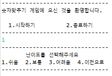 System.out.println("1.쉬움 2.보통 3.어려움 4.이전으로");